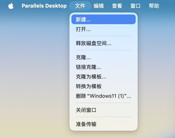 图2:Parallels Desktop 文件菜单