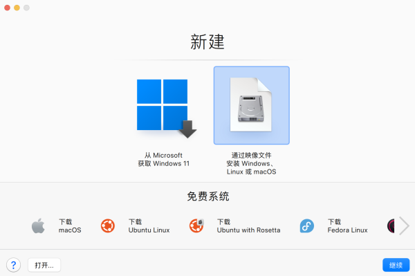 4.选择 通过映像文件安装 Windows 、Linux 或 macOS ,点击 继续 。