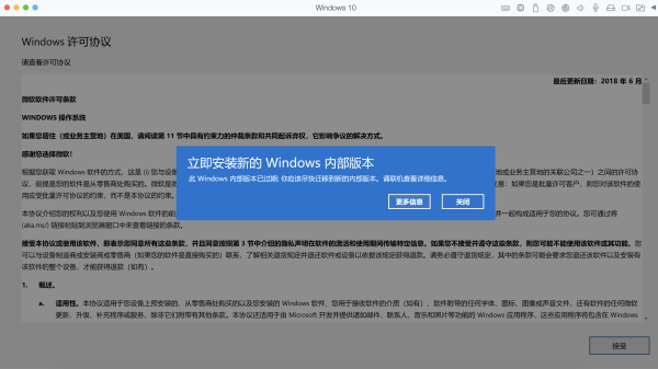 13.由于Windows 10 ARM 版本,微软公司已停止支持,关闭提示信息后,点击 接受 。